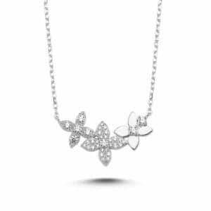 Collier Marylin en argent rhodié 925/1000, Mini centre fleur sertis de cubics zirconiums.